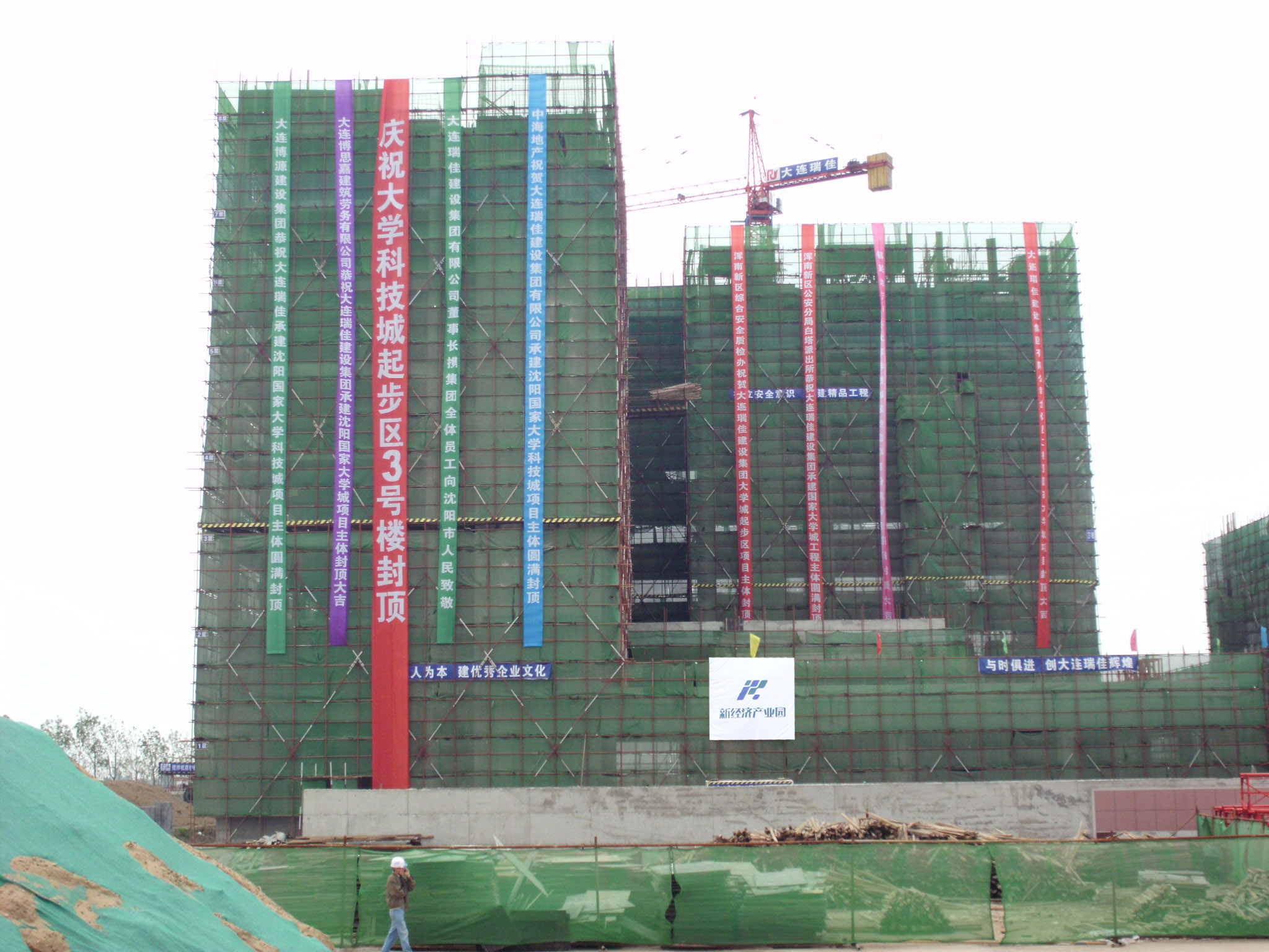 2012年6月2日10点58分,沈阳国家大学科技城新经济产业园“起步区2#、3#楼及示范区U1#-U9#”封顶仪式隆重举行。自项目动工以来,在管理总部领导的大力支持下,在项目公司及全体参建人员的共同努力下,坚持保质量、保安全、保进度的方针,克服了种种困难,终于提前完成主体封顶。