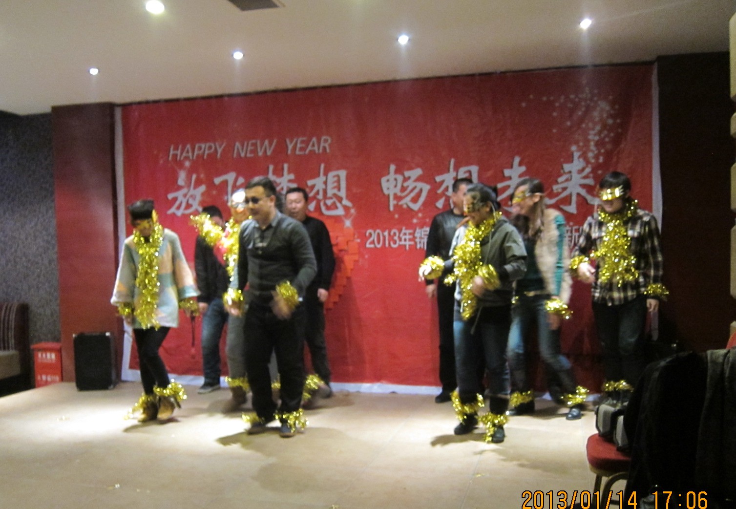 年终岁末、辞旧迎新,沈阳锦联左岸物业公司“放飞梦想、畅想未来”主题年会于2013年1月23日17:00分在美食美佳酒店隆重召开。公司共计106名员工参加了本次会议。本次会议首先是表彰左岸物业年度优秀员工,本年度优秀员工分别在客服部、工程部、安管部等一线部门评选出6名。由总经理刘涛为其颁发荣誉证书,同时由优秀员工代表万清义做获奖感言。最后,总经理刘涛做了总结性发言,并代表公司向全体员工表示节日的问候和祝福。 18:00分,迎新晚会正式开始。晚会上有员工们自编自演的精彩节目表演以及现场游戏互动。精彩的节目和搞笑的表演,赢得了阵阵的笑声和掌声。同时在欢声笑语中,左岸物业全体员工也享受了一顿丰富的“新年团圆饭”。