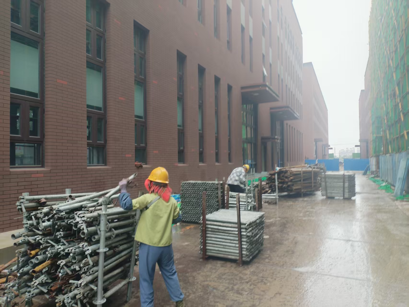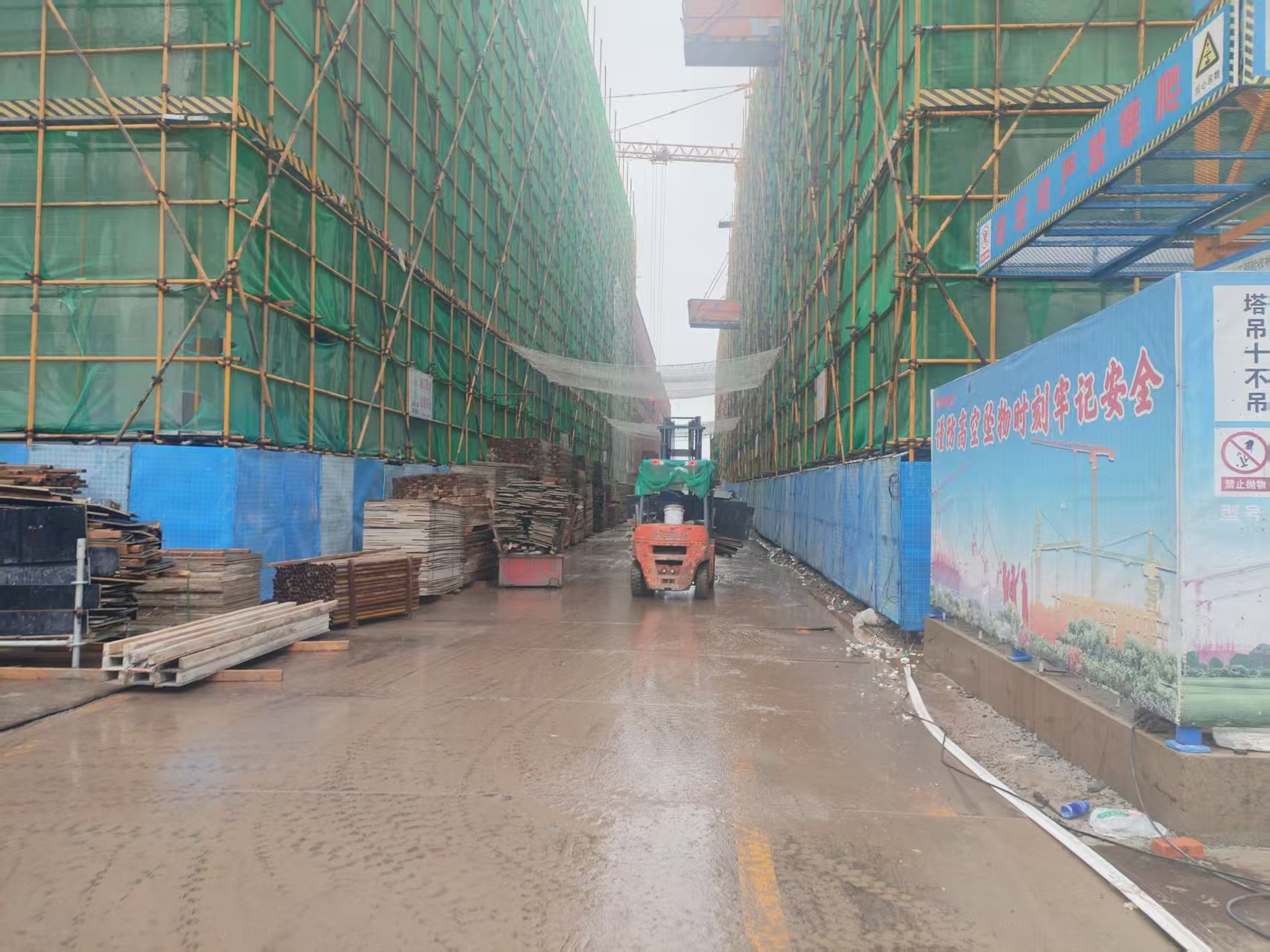 在材料管理方面,项目部加强对进场材料的防护,钢筋、模板等材料堆放区全部垫高并覆盖防雨布。现场还配备了充足的防雨物资,确保在条件允许的情况下,工人们能够持续作业。