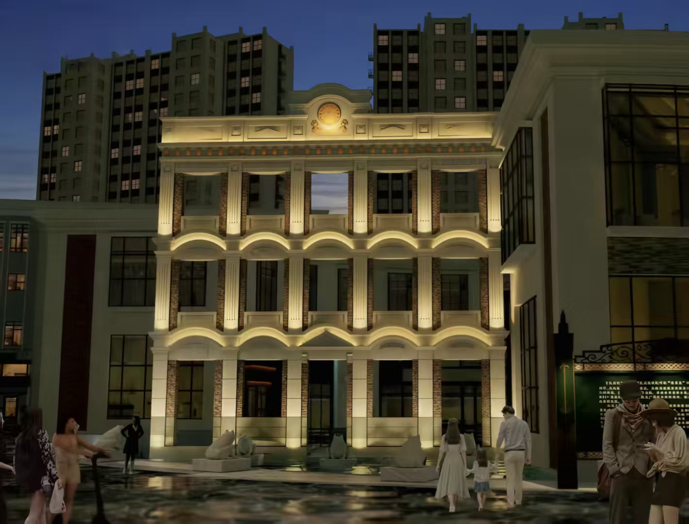 牌楼亮化焕新:作为街区文化地标,牌楼将在保留传统建筑肌理的基础上,融入智能LED照明系统,通过暖色调灯光勾勒飞檐翘角的轮廓,重现“雕梁画栋映夜辉”的视觉盛宴,打造夜间拍照打卡新节点。