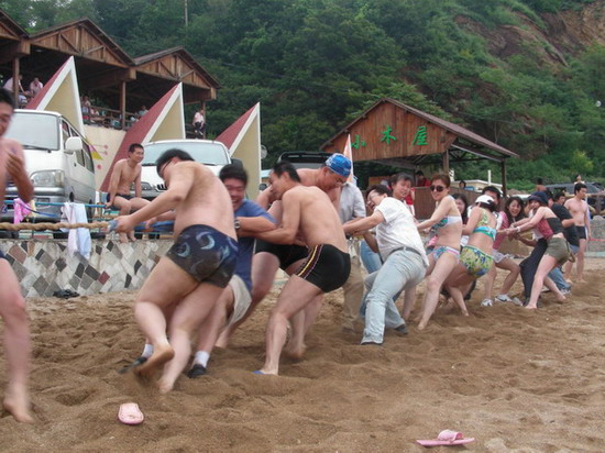 2007年8月18日,锦联地产集团管理总部、大连公司、锦联樱花园项目部全体员工在金沙滩海滨浴场度过了一个愉快而难忘的周末。 “曾记否?中流击水,浪遏舟!”锦联地产集团总裁于大海、成本控制中心总经理刘瑞华等人游向大海深入时,大海就是激情舞者的舞台。回望处,青山碧海人声杳,平林漠漠烟如织。看到别人无法企及的风景,那是一种人生境界,有境界者自成高格。 金沙滩人头如织,于喧嚣中自得其乐,又是一种人生体验——拔河比赛,一条长长的绳索成为检验团队凝聚力最直观最有效的方式,加油声此起彼伏,胜也笑笑败也笑笑,笑声不绝于耳。 于总在晚宴的致辞中再次强调:只有奋力划水,达到别人无法企及的地方,才能领略旁人无法感知的风景;只有全力以赴,才会有令自己满意的结果;人生不是任何时候都处于公平合理的竞争环境中;不是每一场竟技都能得到公正的裁判。付出200%的努力,将个人自觉融入企业发展过程中,在压力与挑战面前,始终保持工作的热情,无论胜负。
