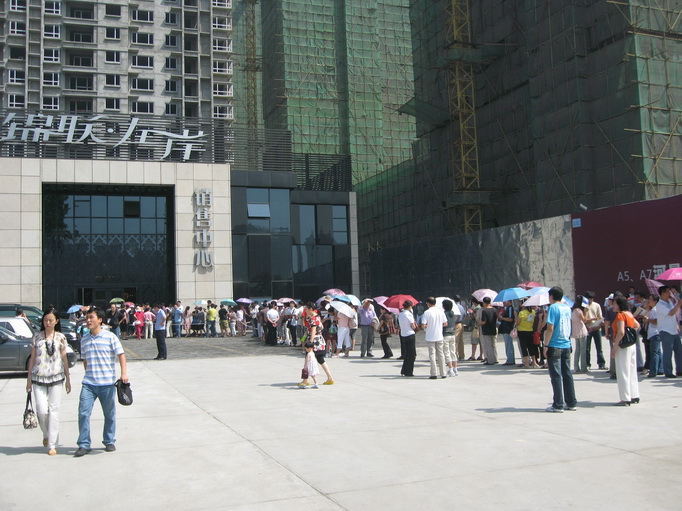 2009年7月3日,锦联•左岸继一期火爆销售后,隆重推出二期产品认购。售楼处前的广场上,自清晨起客户就连绵而来,排起了逾500人的长队。虽时值夏日,红日当空,但广大客户的笑脸上却满溢着兴奋与憧憬。